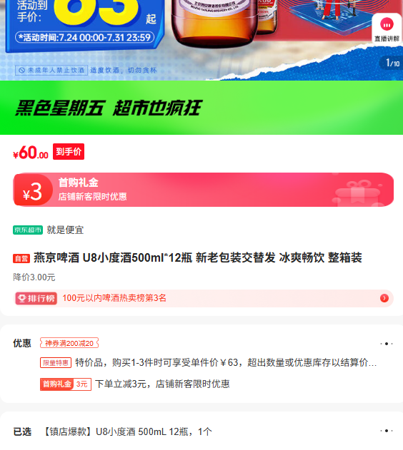 满1元,打9.5折