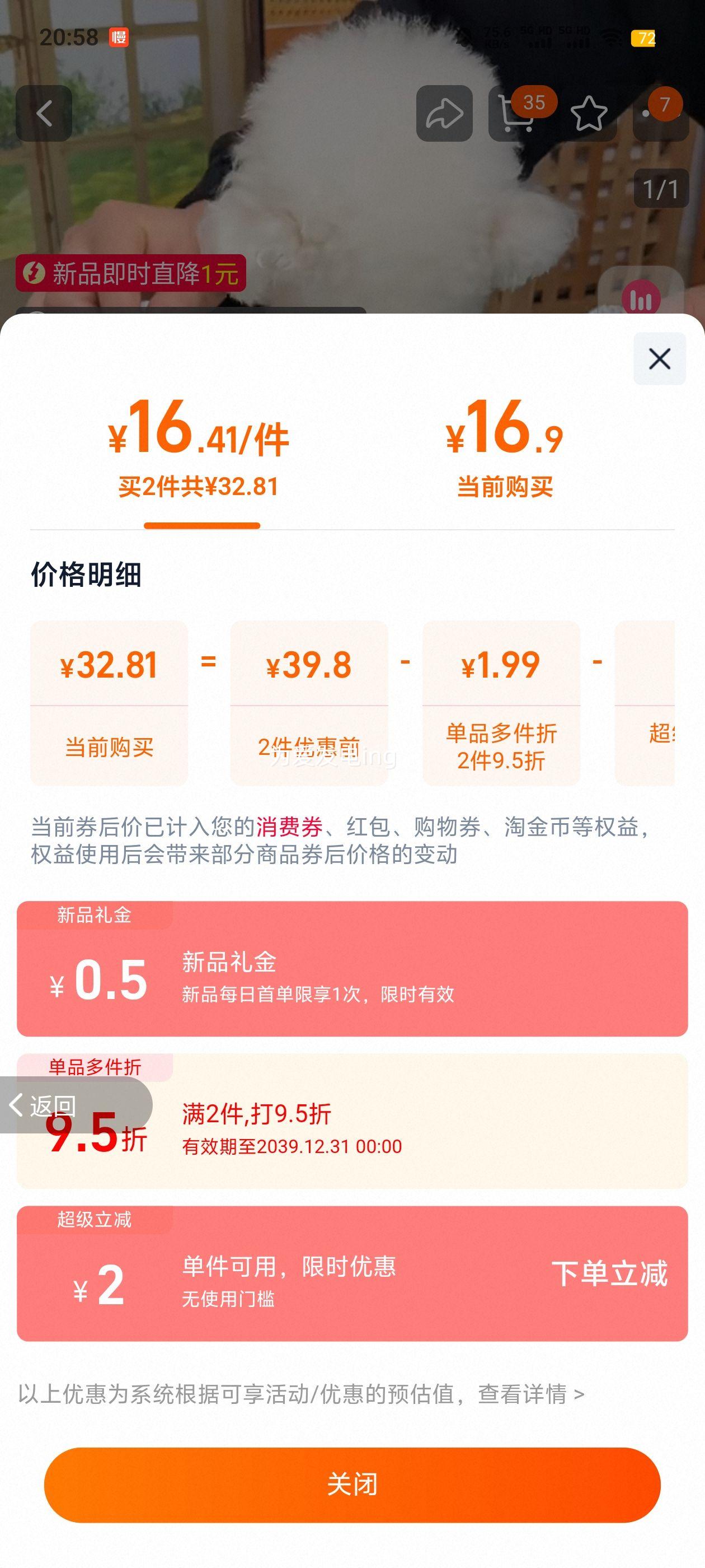 29.9元(合14.95元/次,需领券)