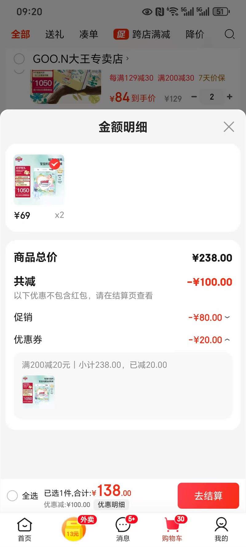每满119减40