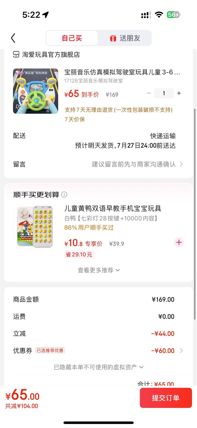 68.56元(共68.56元+10.44元淘金币)
