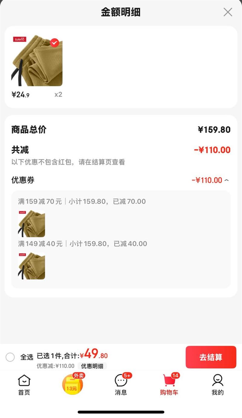 满159元减70元