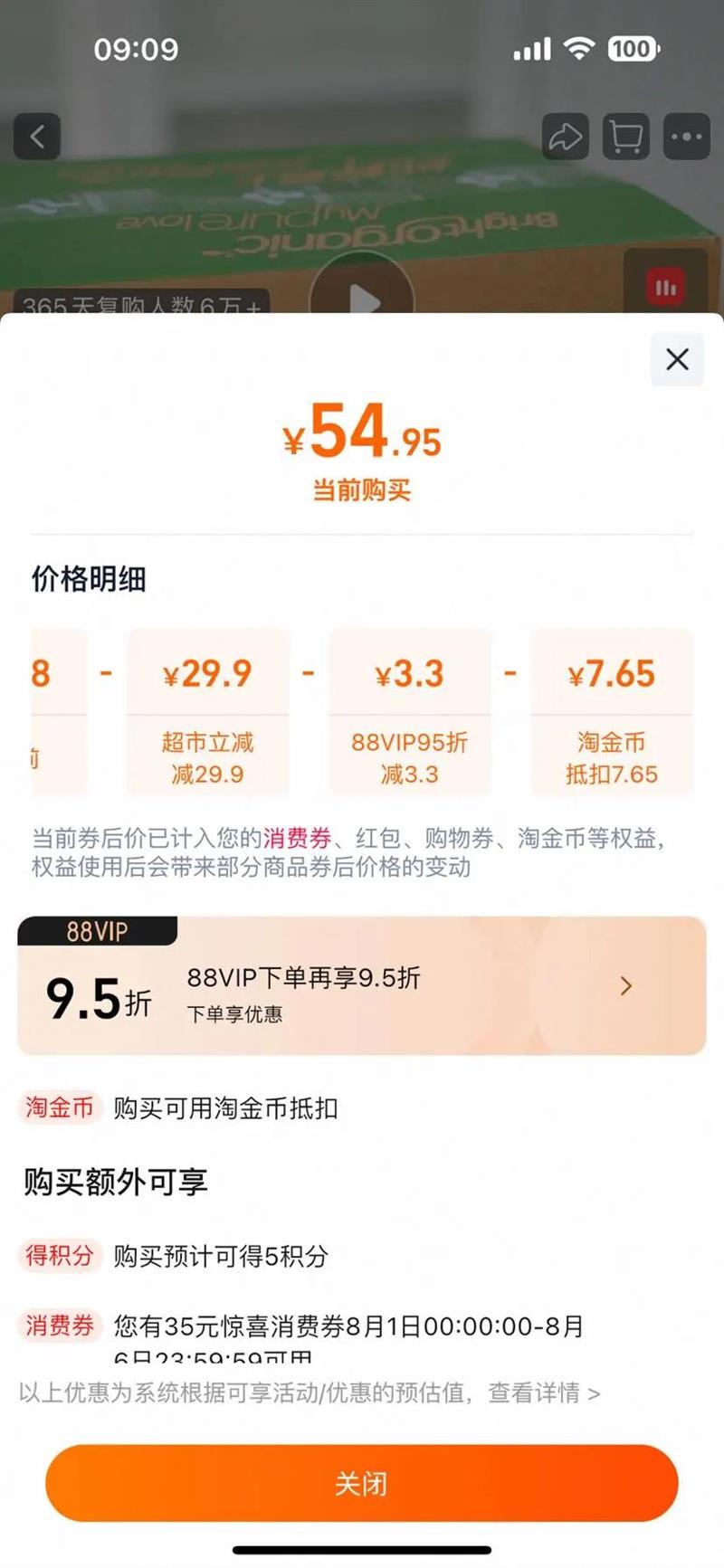 下拉详情页淘金币抵扣7.65元