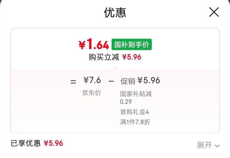 国家补贴0.29元