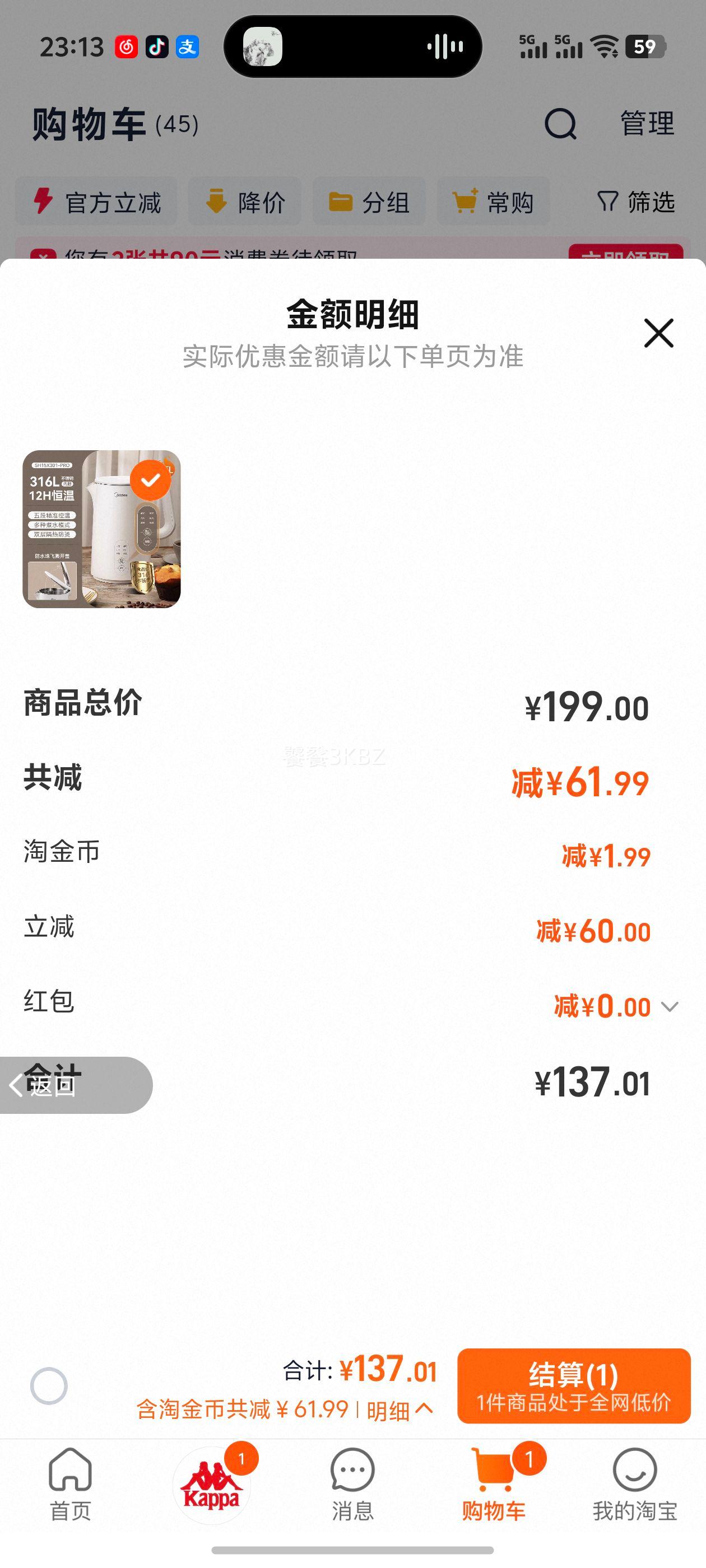 68.56元(共68.56元+10.44元淘金币)