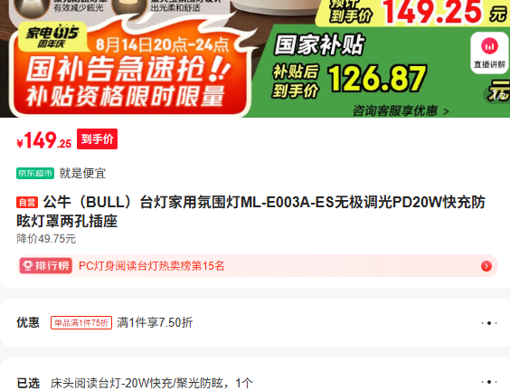 满1件,打7.5折