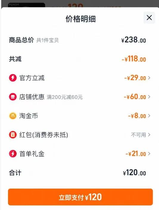 首单立减21元、晒单返10元