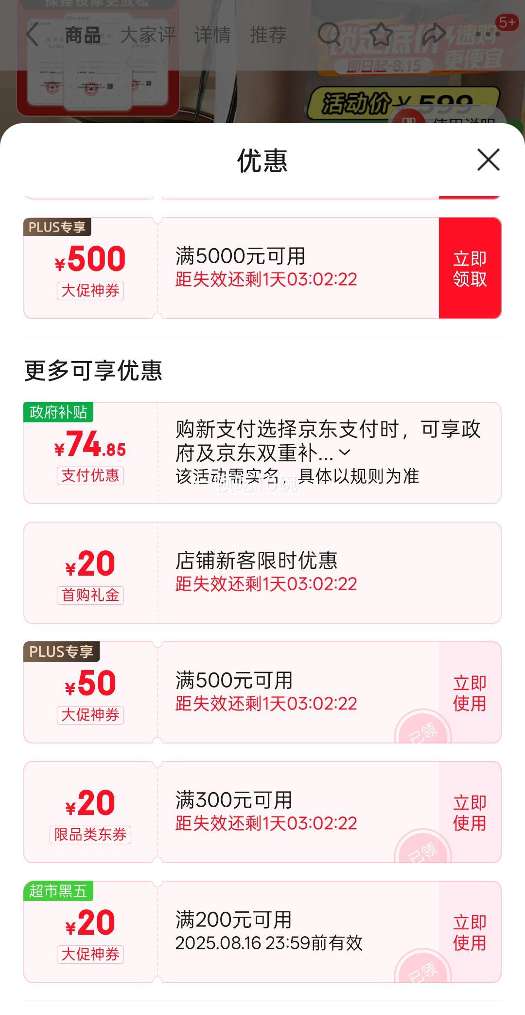 Plus补贴满500元减50元