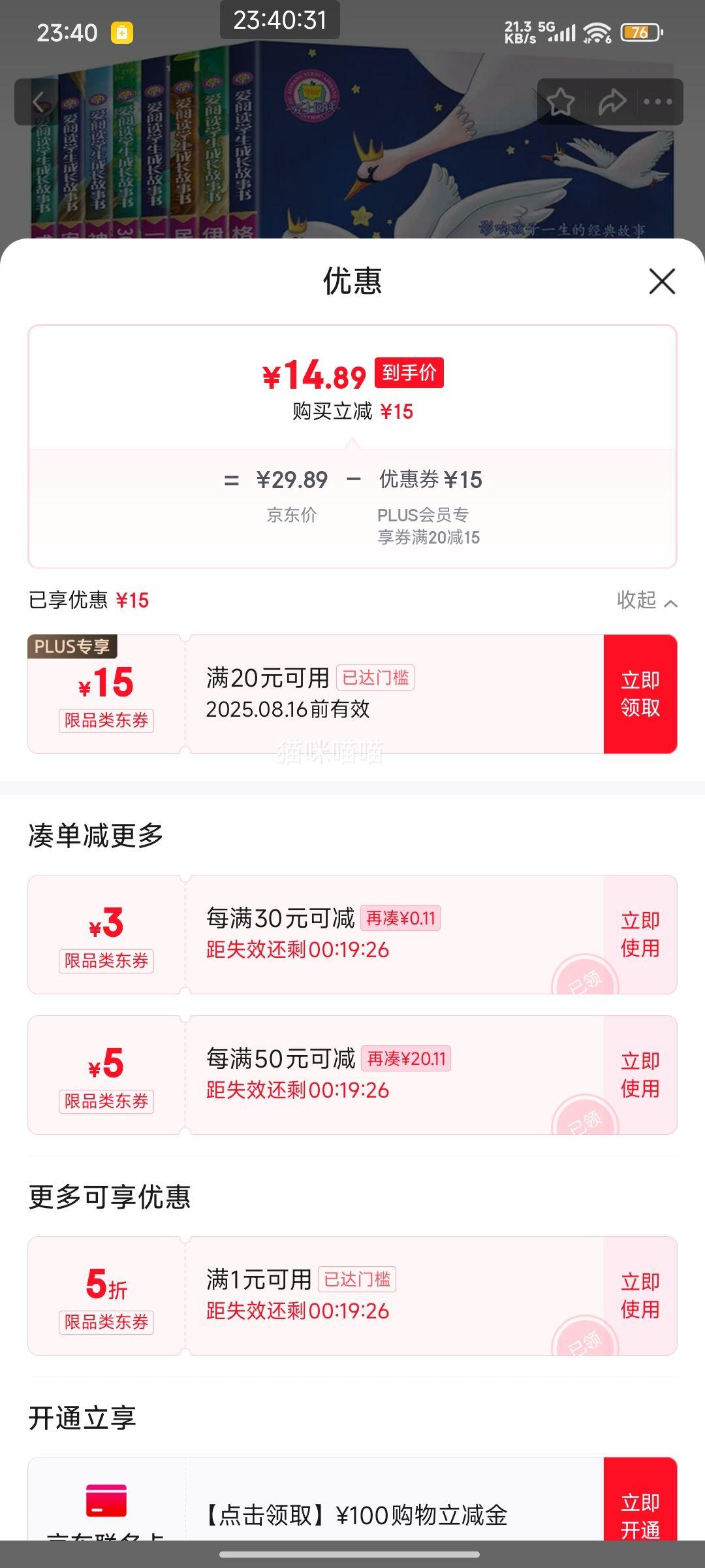 29.9元(合14.95元/次,需领券)