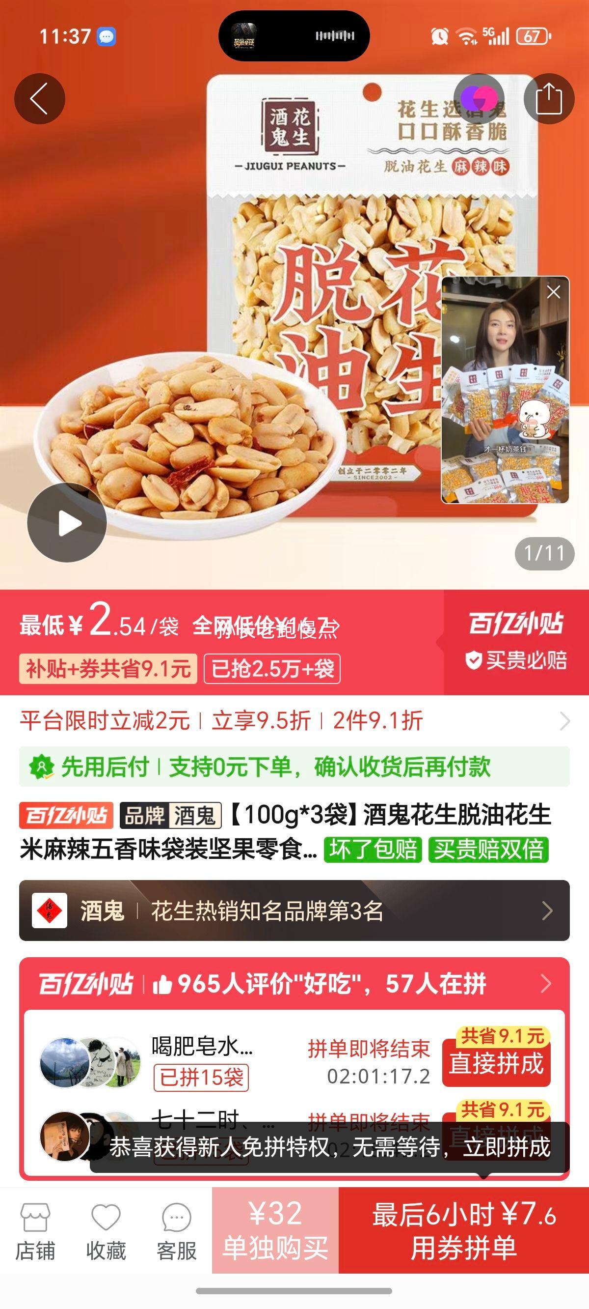 28.9元包邮+100淘金币