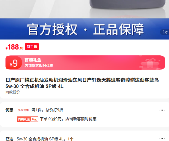 满1件,打9折