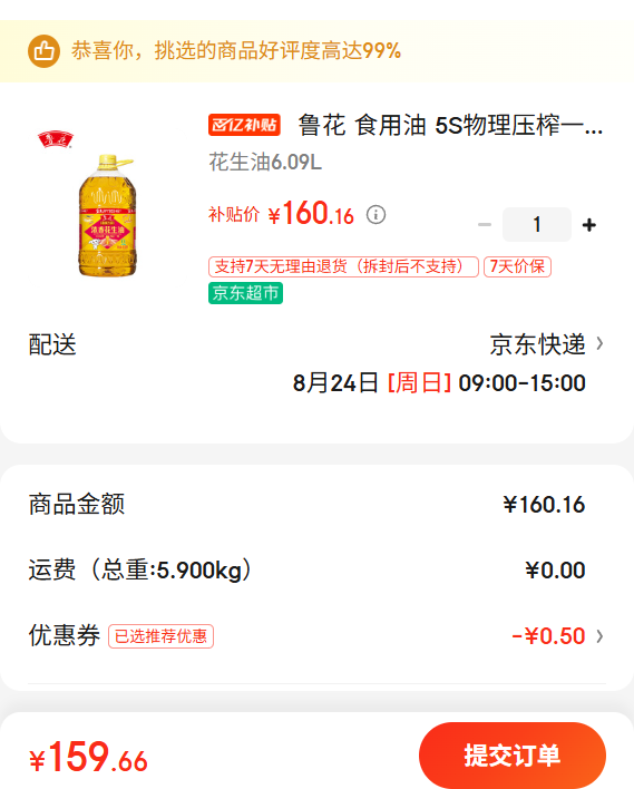 胖东来 家用食用油 一级花生油5L*4桶 原箱送礼佳品