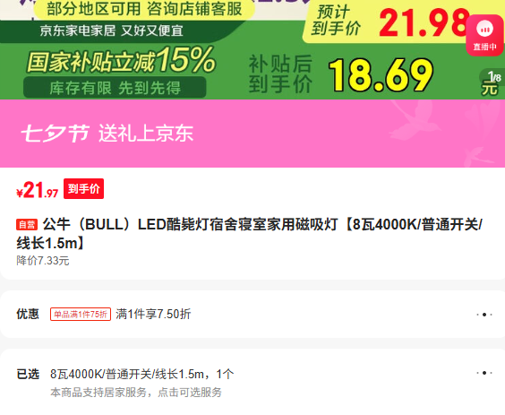 满1件,打7.5折