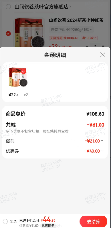 21.41元(叠加全能卡红包后19.41元)浙江、江苏、陕西等地区可做到,苏州低至16.66元