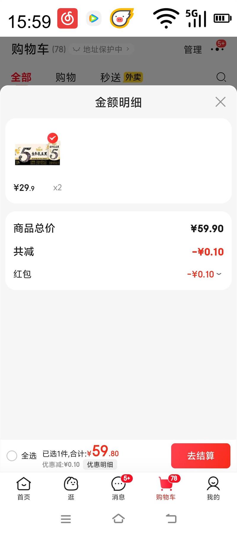 58.4元(合9.73元/件)