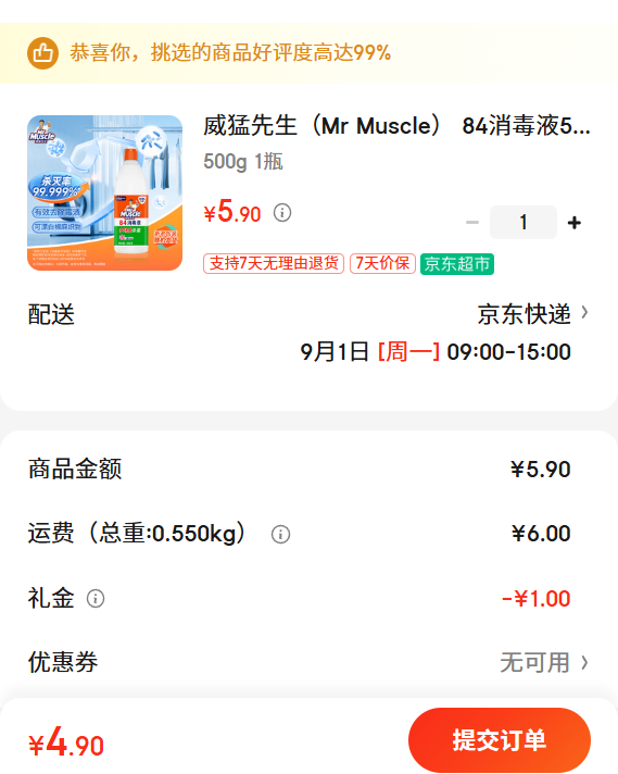 满1元,打9.5折