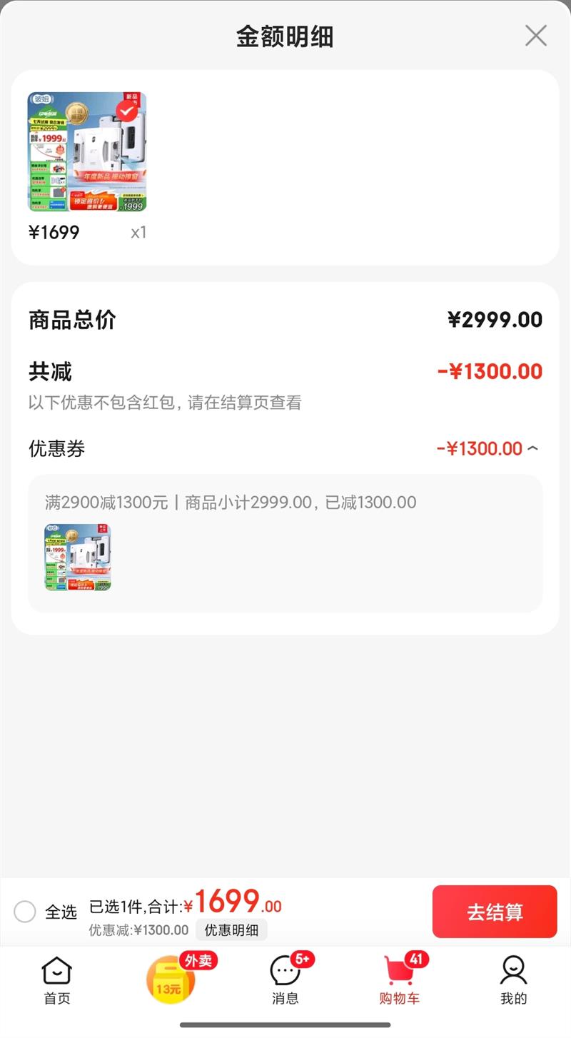 满2900元减1300元
