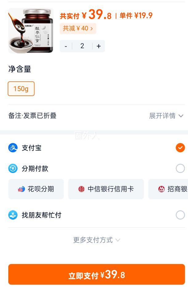 商品到手价39.8元(需领券,合19.9元/件),根据小编提供的优惠信息(优惠券+满79减40),下单2件。好价不错过,感兴趣的慢友可以试试!