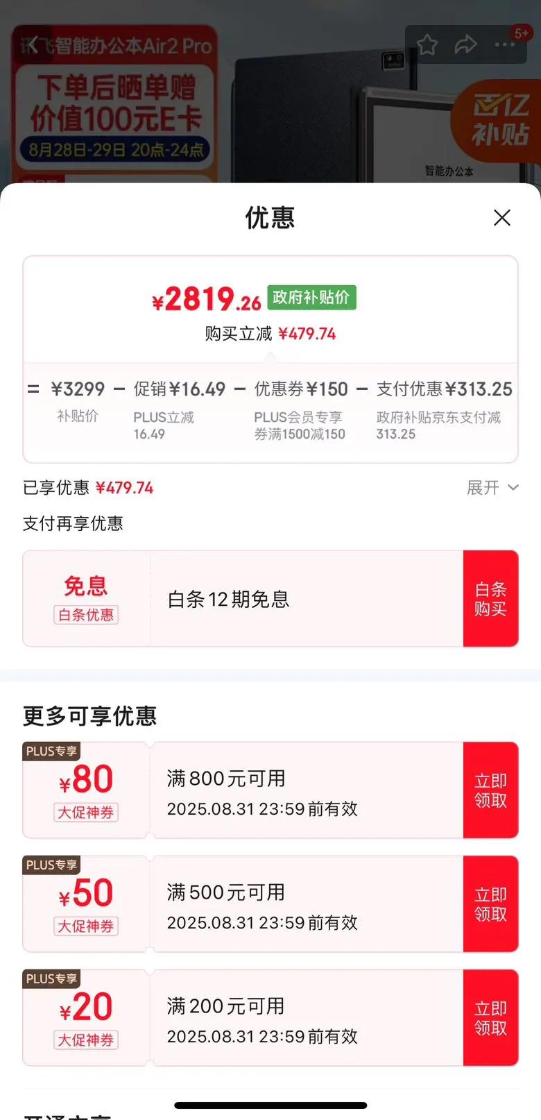 京东支付国家补贴立减313.25