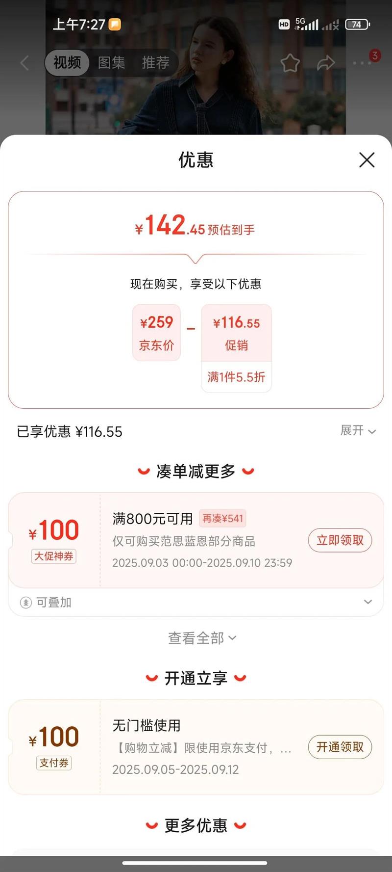 满1件,打5.5折