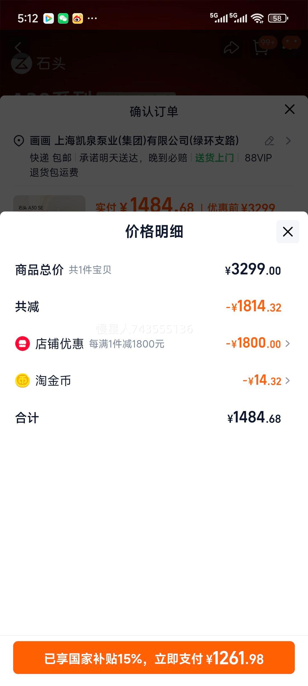 立减1800元