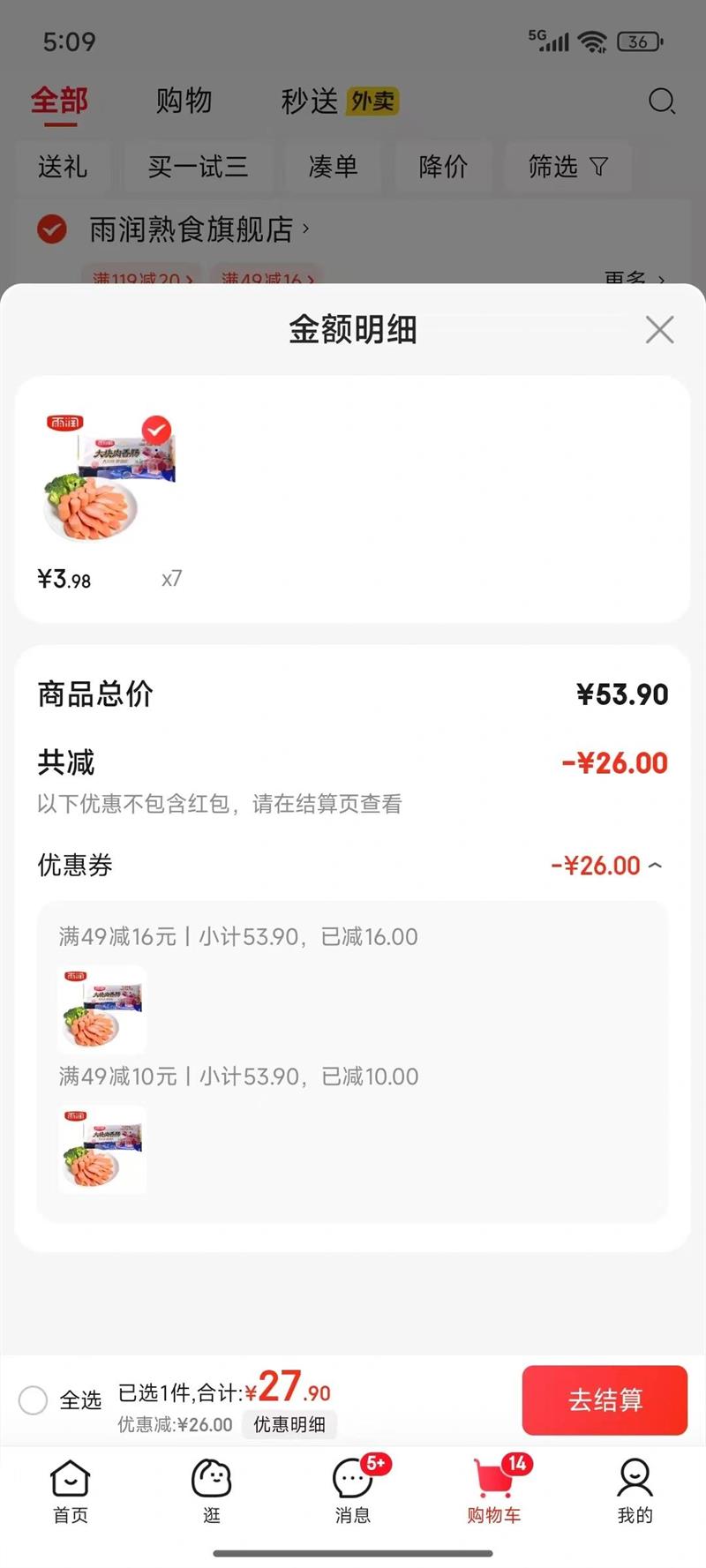 16.66元(叠加全能卡红包后14.66元)杭州、苏州可做到