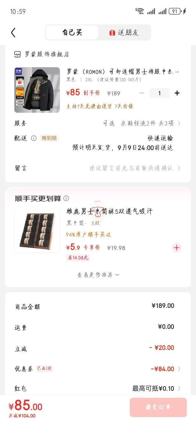 满189元减20元