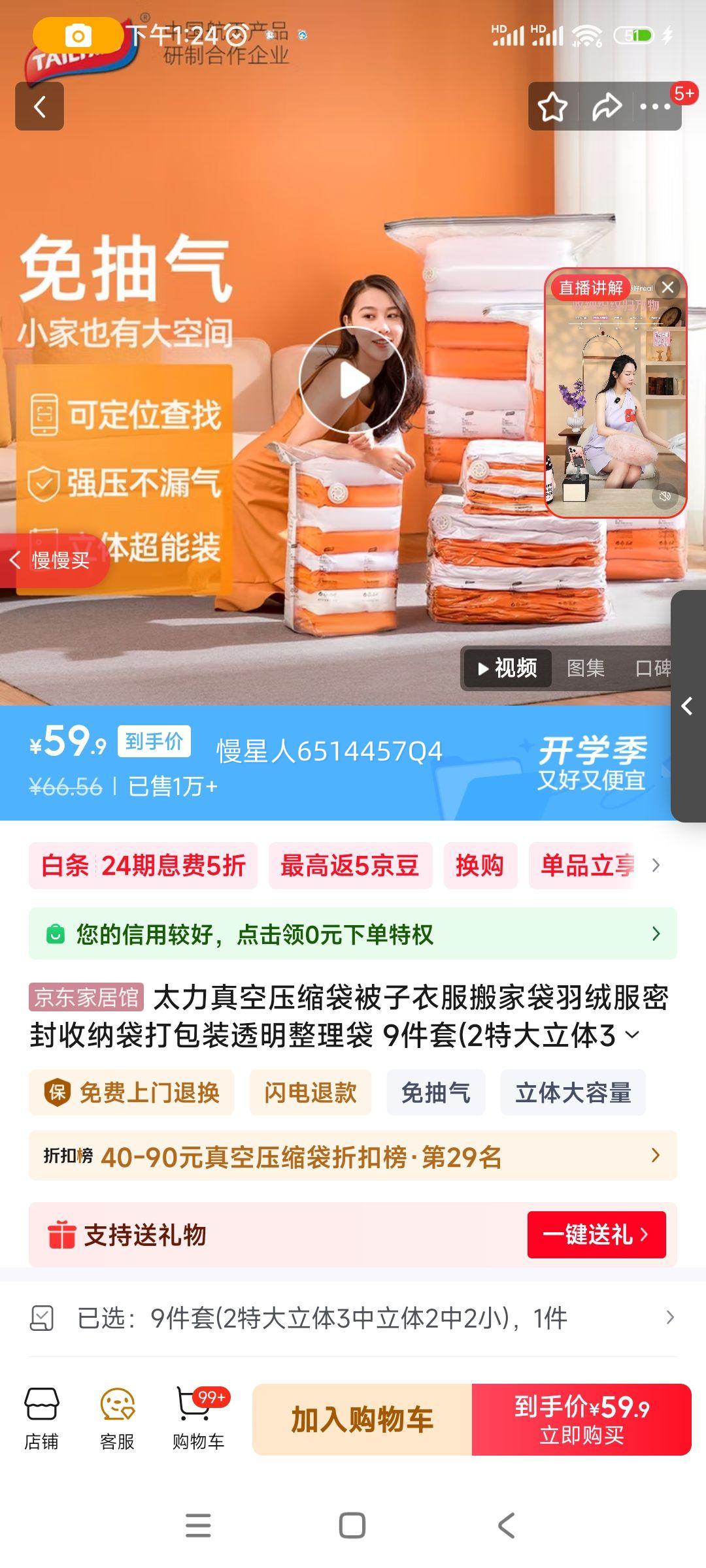 满1件,打9折