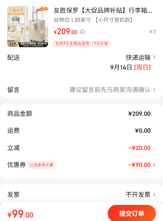 175.35元包邮+54.5元淘金币(需凑单)