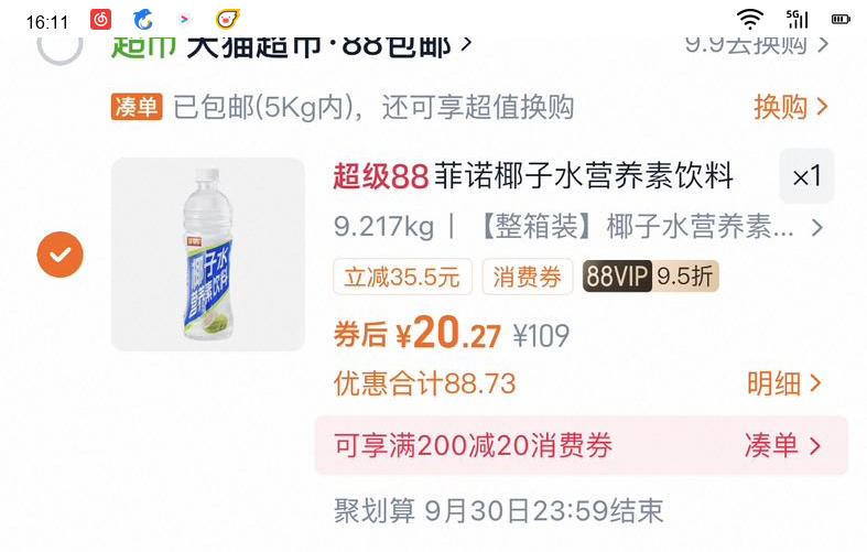 商品到手价17.27元,根据小编提供的优惠信息(优惠券+满30减30元+凑单品拍1),下单1件。好价不错过,感兴趣的慢友可以试试!