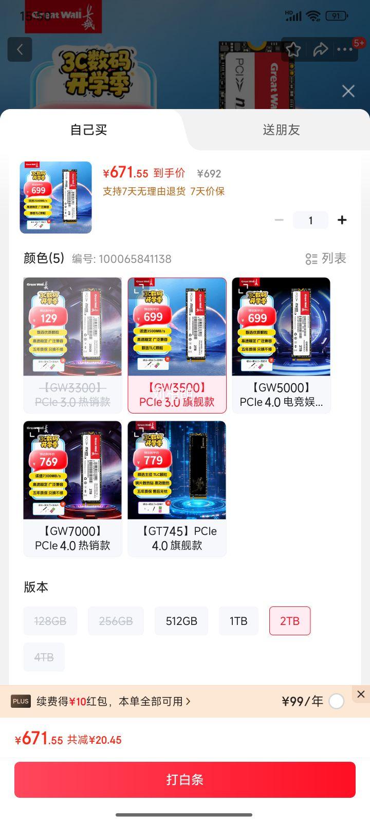 商品到手价672元,根据小编提供的优惠信息(3C-政府补贴15%/20%--部分地区可领+plus 超级18 超级补贴5000-500/3000-300/1500-150/500-50),下单1件。好价不错过,感兴趣的慢友可以试试!