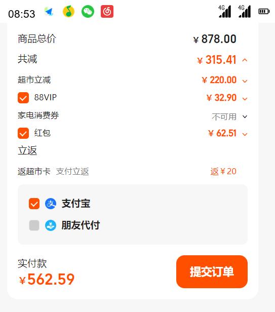 立减220元,消费券,返卡20元,88会员好价