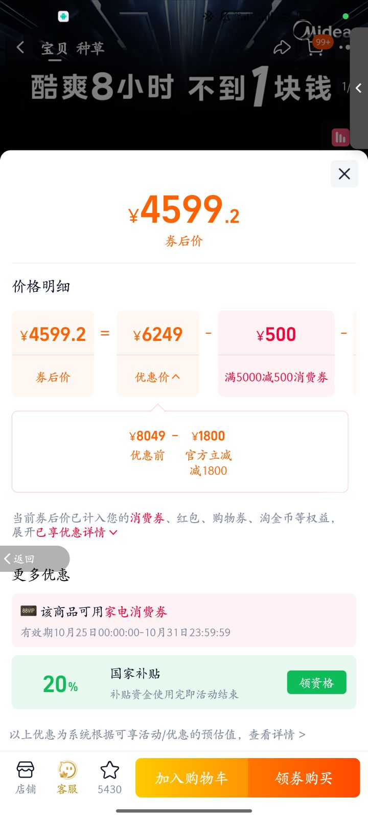 官方立减1800元