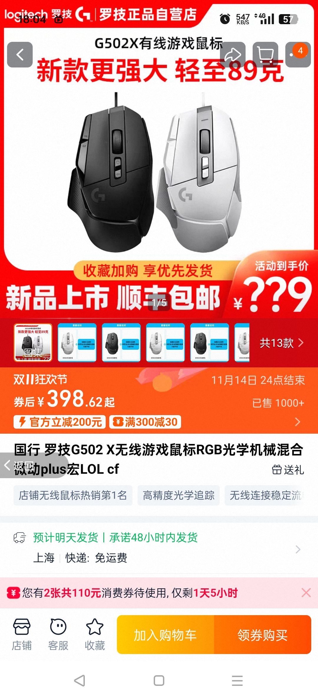111.43元+联系客服晒图返15元+35.91元淘金币(需领券、需凑单)