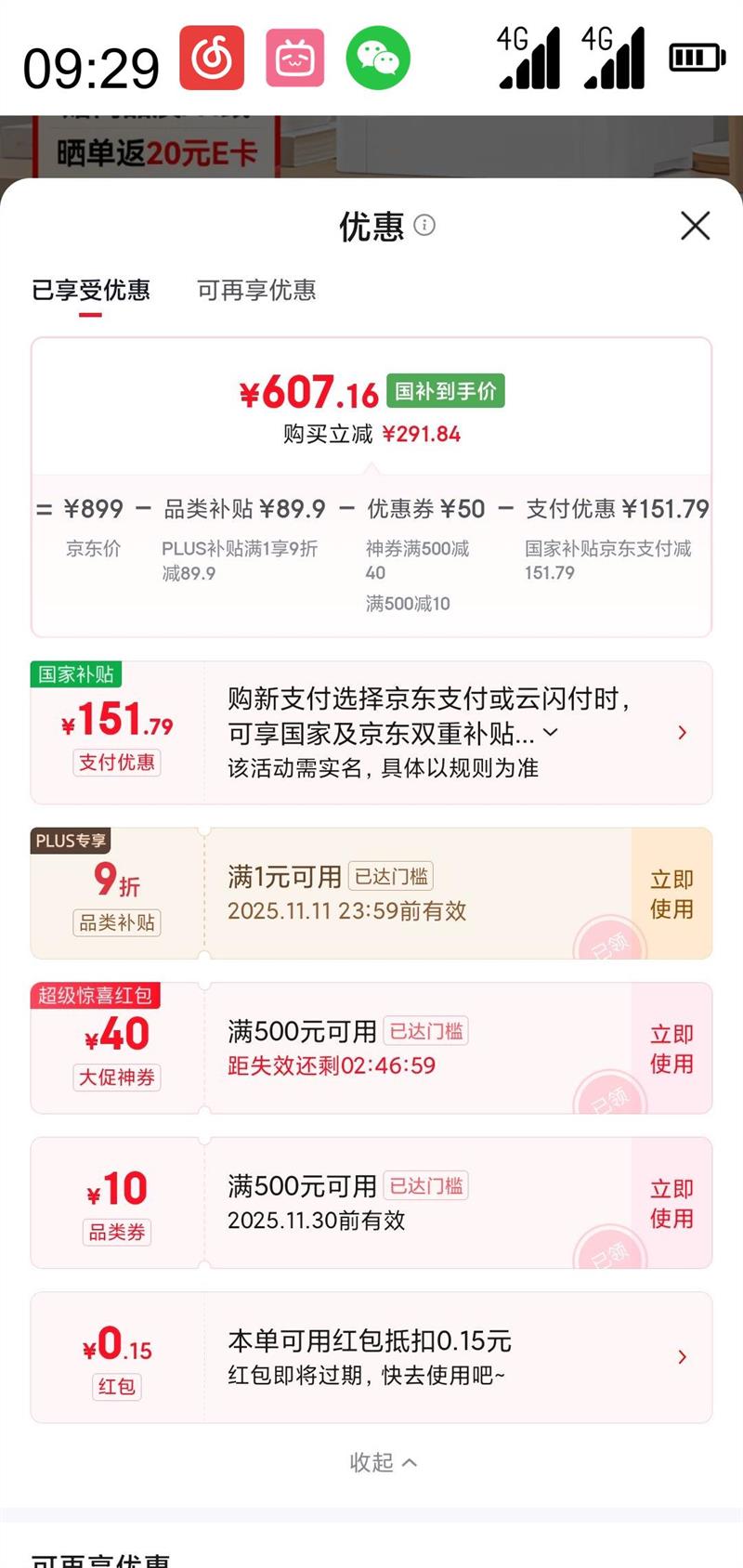 国家补贴减151.79元