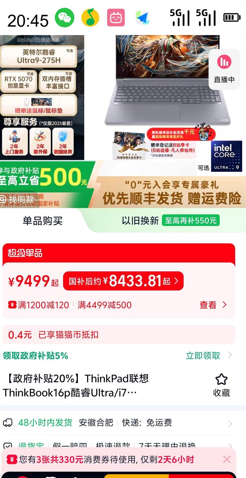 满4499元减500元,补贴5%起减449.95元优惠活动