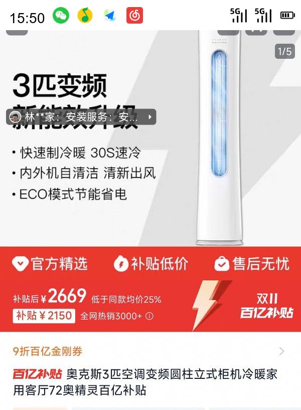 补贴2180,参与9折金刚券优惠活动(家电)