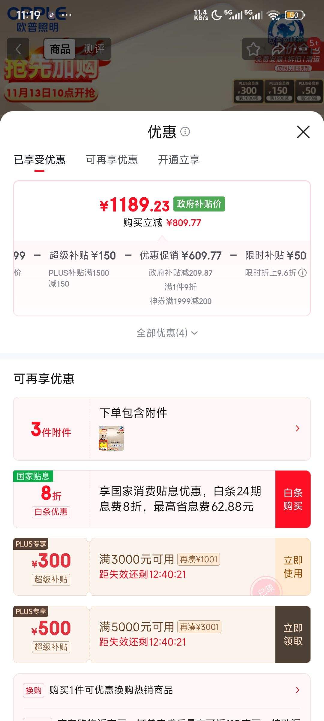 商品到手价1189.23元,根据小编提供的优惠信息(满1999减200(限平台)),下单1件。好价不错过,感兴趣的慢友可以试试!