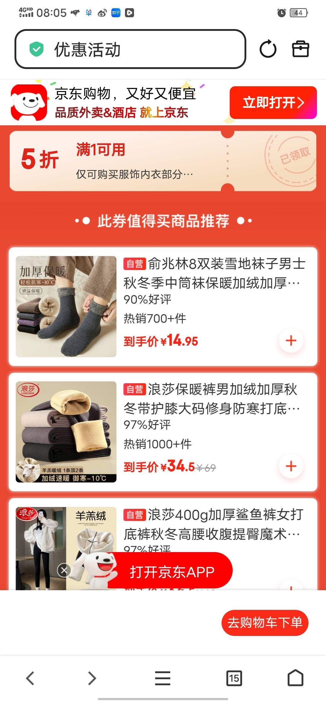 京东 服饰内衣 满1元享5折券