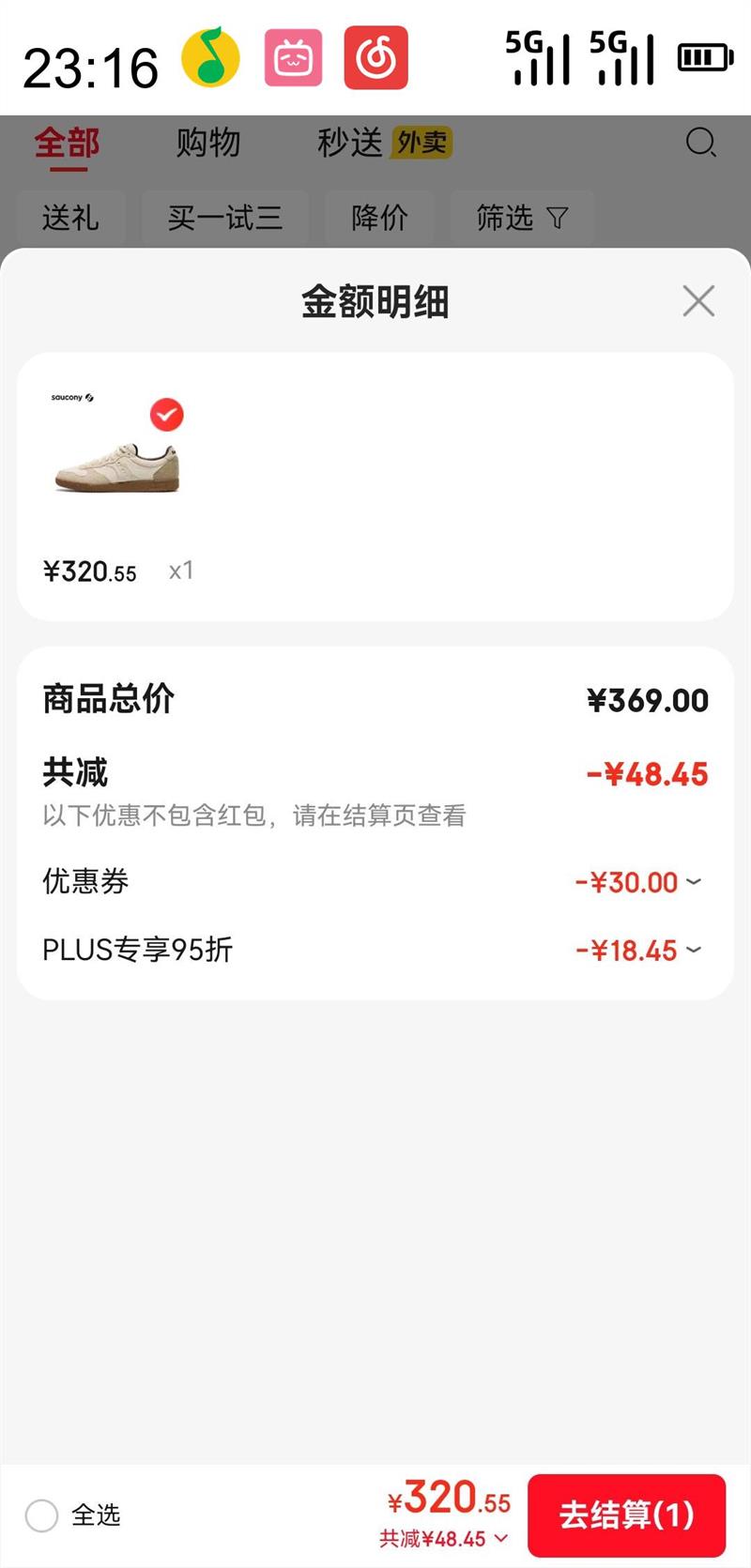 PLUS专享95折减18.45元优惠活动