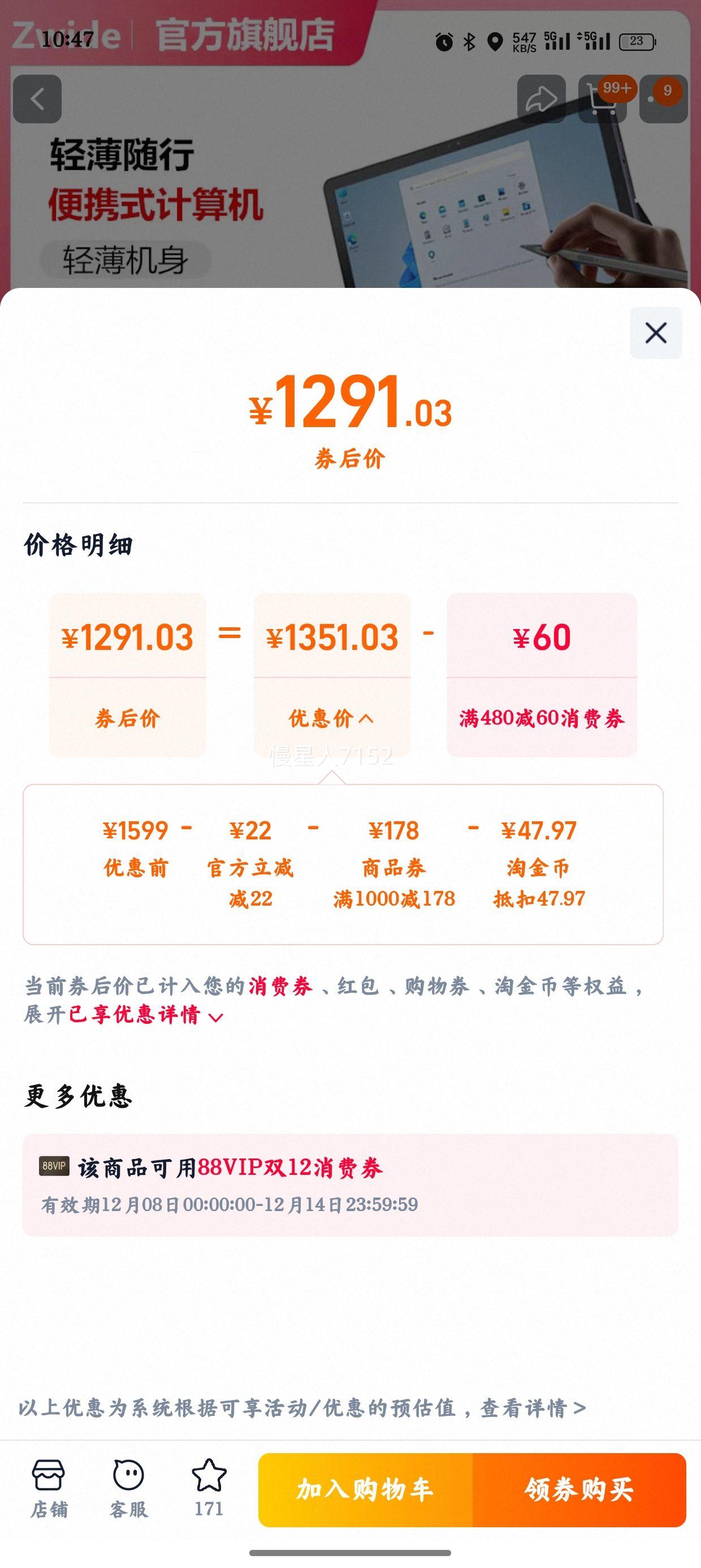 淘金币抵扣47.97元