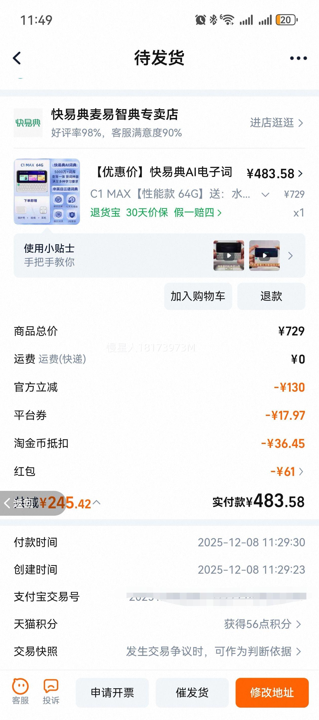 8644.11元(淘金币界面下单)+599.94元淘金币