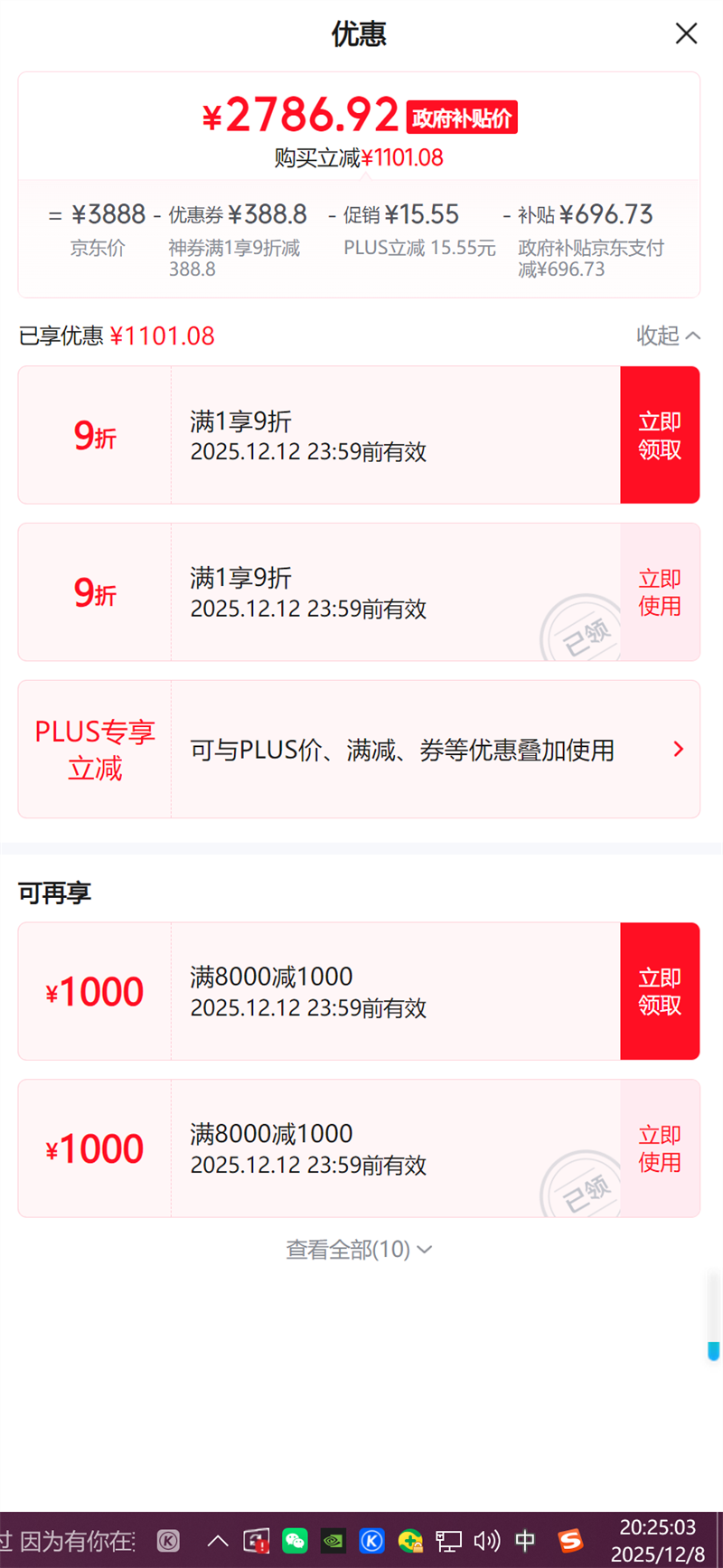 2699.01元+241.98元淘金币(需领券、需凑单)