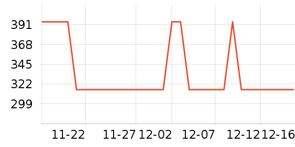 天猫超市此款目前活动售价394元,参与立减79元,补贴15%起减47.25元优惠活动,下单1件,实付低至267.75元。