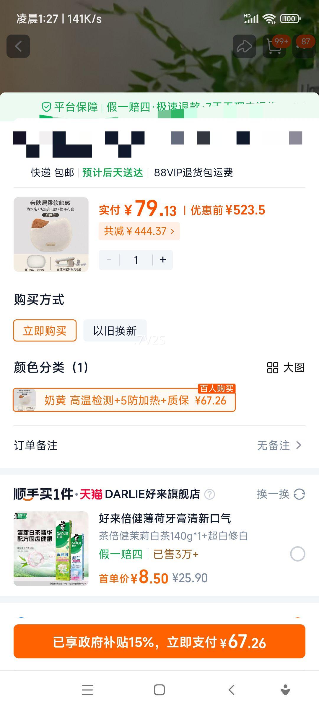 47.3元+8.45元淘金币(需领券)