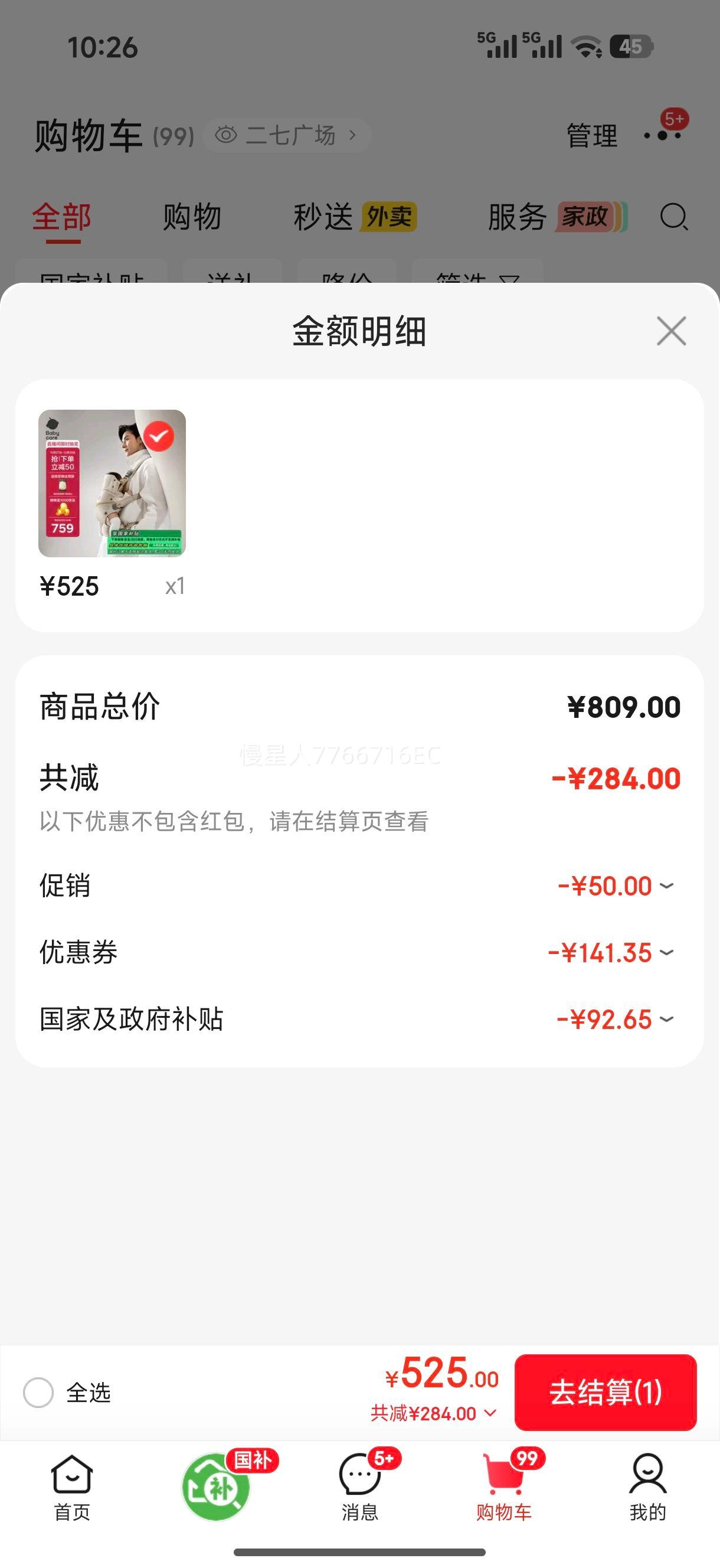 政府补贴减92.65元