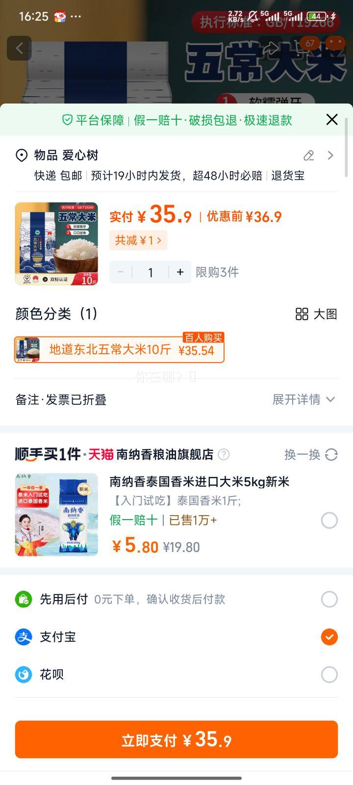 闭眼买、再降价、天降礼金:福临门 皇宗贡稻长粒香米 5kg*4袋*1箱