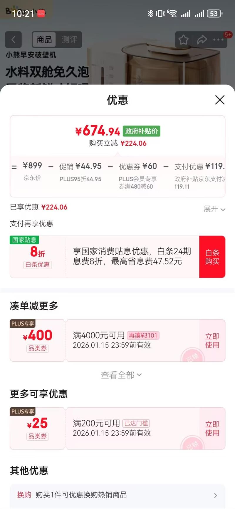 国家补贴京东支付减119.11元