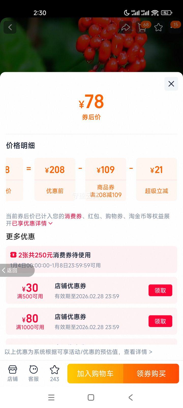 淘宝省钱购 新增必中1元猫超卡 每日进入弹窗可领至高666元随机红包