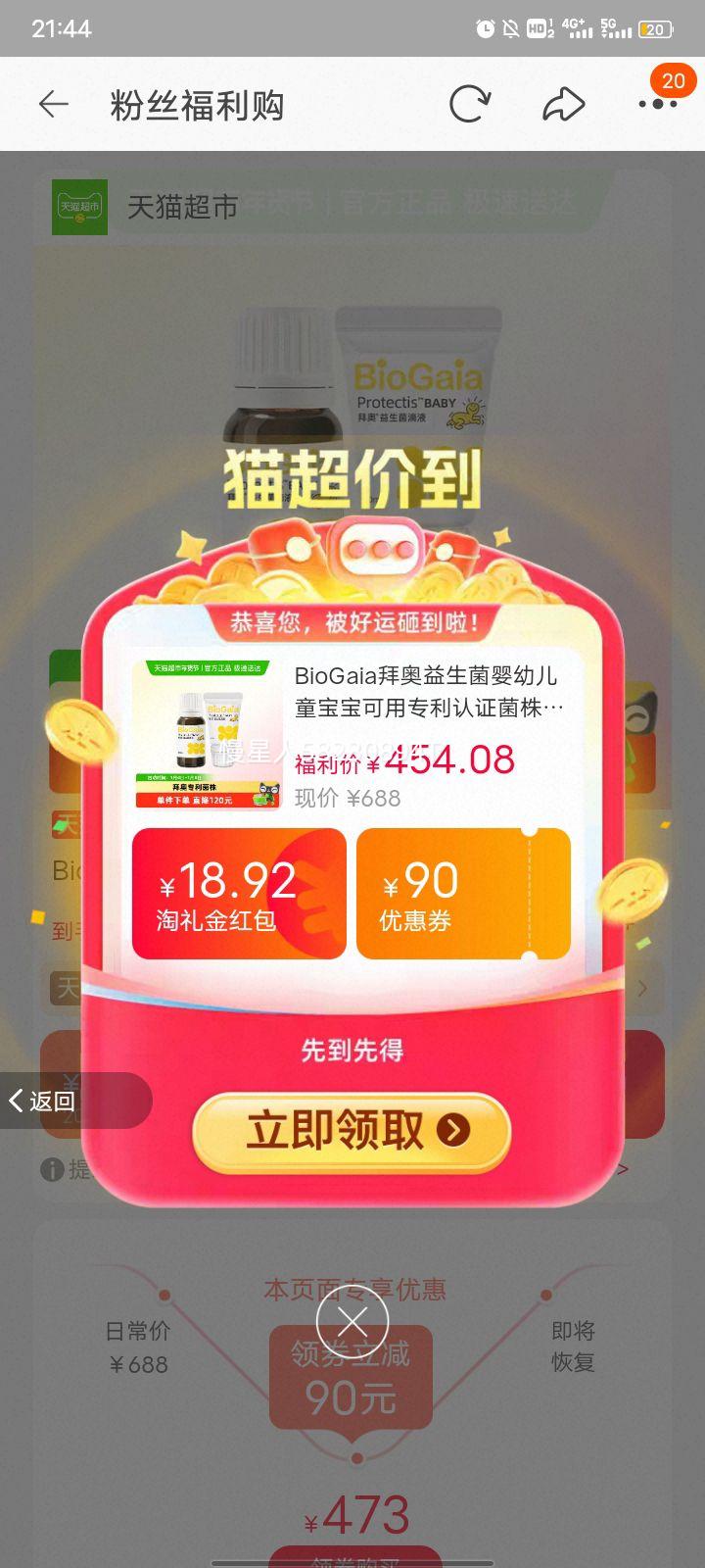 淘宝省钱购 新增必中1元猫超卡 每日进入弹窗可领至高666元随机红包