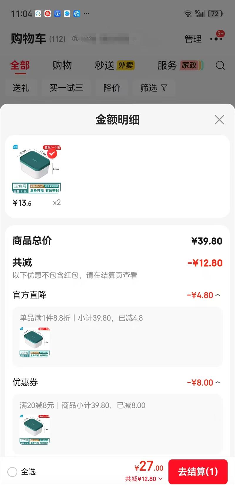 送微信立减金,实测得100元